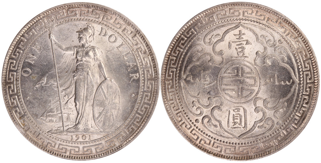 Great Britain, silver Trade Dollar, 1901-B, Britannia holding a trident and shield on obverse,