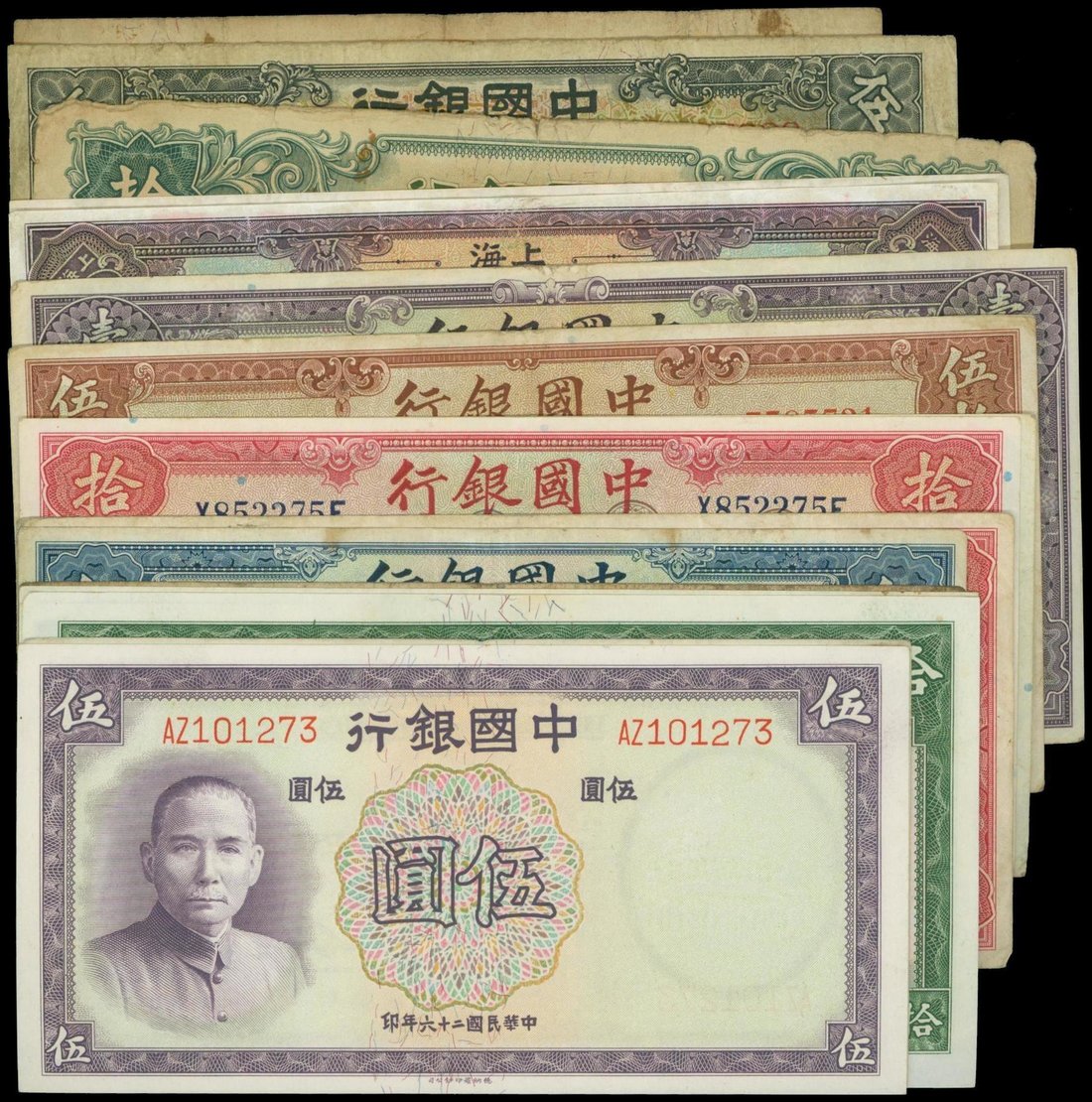The Bank of China, a group of 20 notes, 1 - 100 yuan, mostly small denominations, 1931-1941, some branch issues (such as 'Shanghai', 'Tientsin', 'Chungking', etc.), good to very fine.(20)