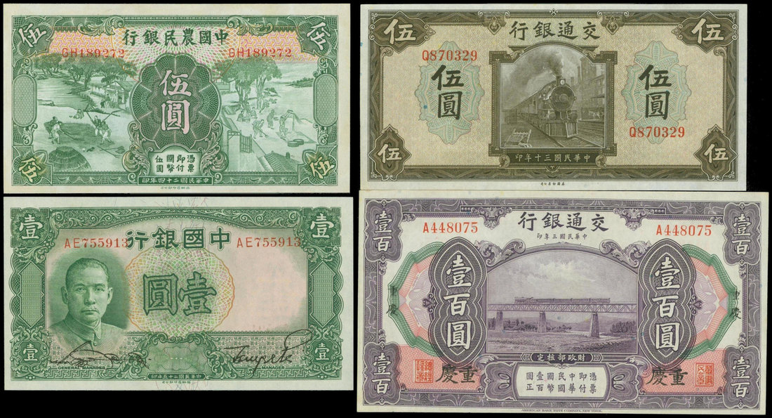 Republican era, group of 4 notes, including a Bank of Communications 100 yuan, Chungking, 1914,