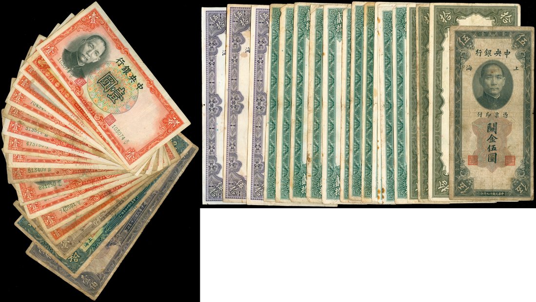 The Central Bank of China, a mixed group of 38 notes from the republican era, a mixed group with many different types,