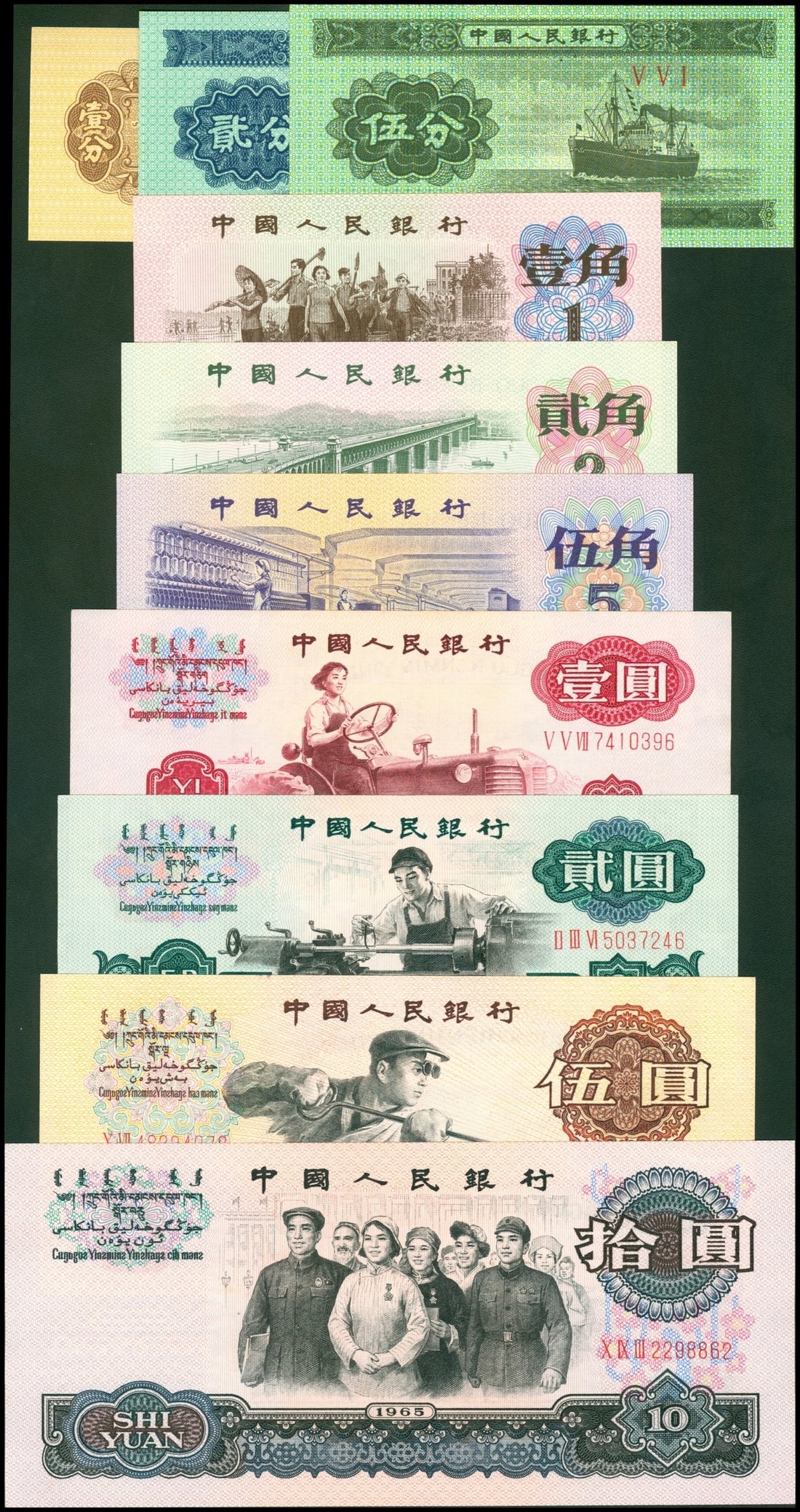 People's Bank of China, a type set of 3rd series renminbi, consisting of the 1 fen to the 10 yuan, including the 2 yuan,