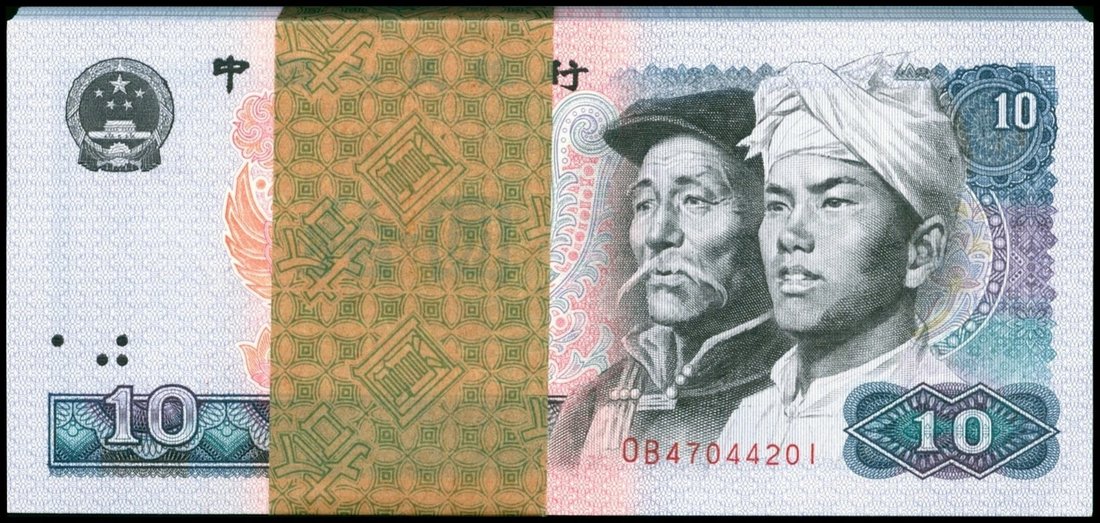 People's Republic of China, 4th series renminbi, a consecutive run of 100x 10 yuan, 1980, serial number OB 47044201 to 47044300,