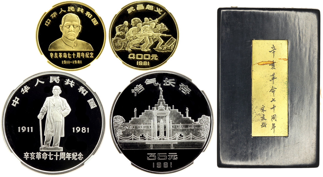 People's Republic of China, pair of gold and silver, 1981, silver 35 yuan and gold 400 yuan, issued to commemorate the 70th Anniversary of the Xinhai Revolution,