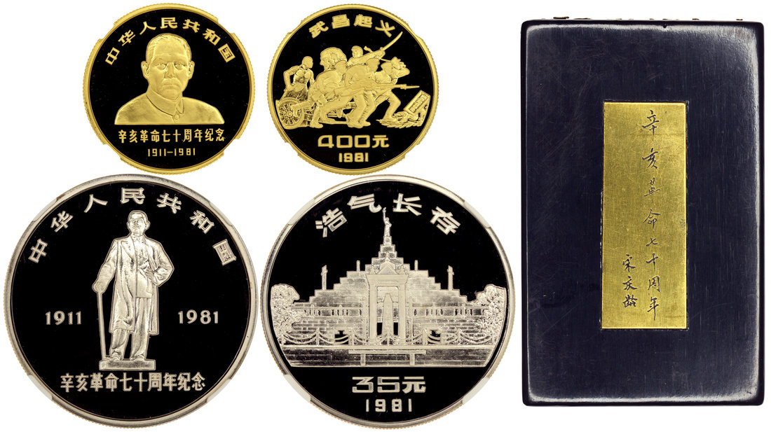 People's Republic of China, pair of gold and silver, 1981, silver 35 yuan and gold 400 yuan, issued to commemorate the 70th Anniversary of the Xinhai Revolution,