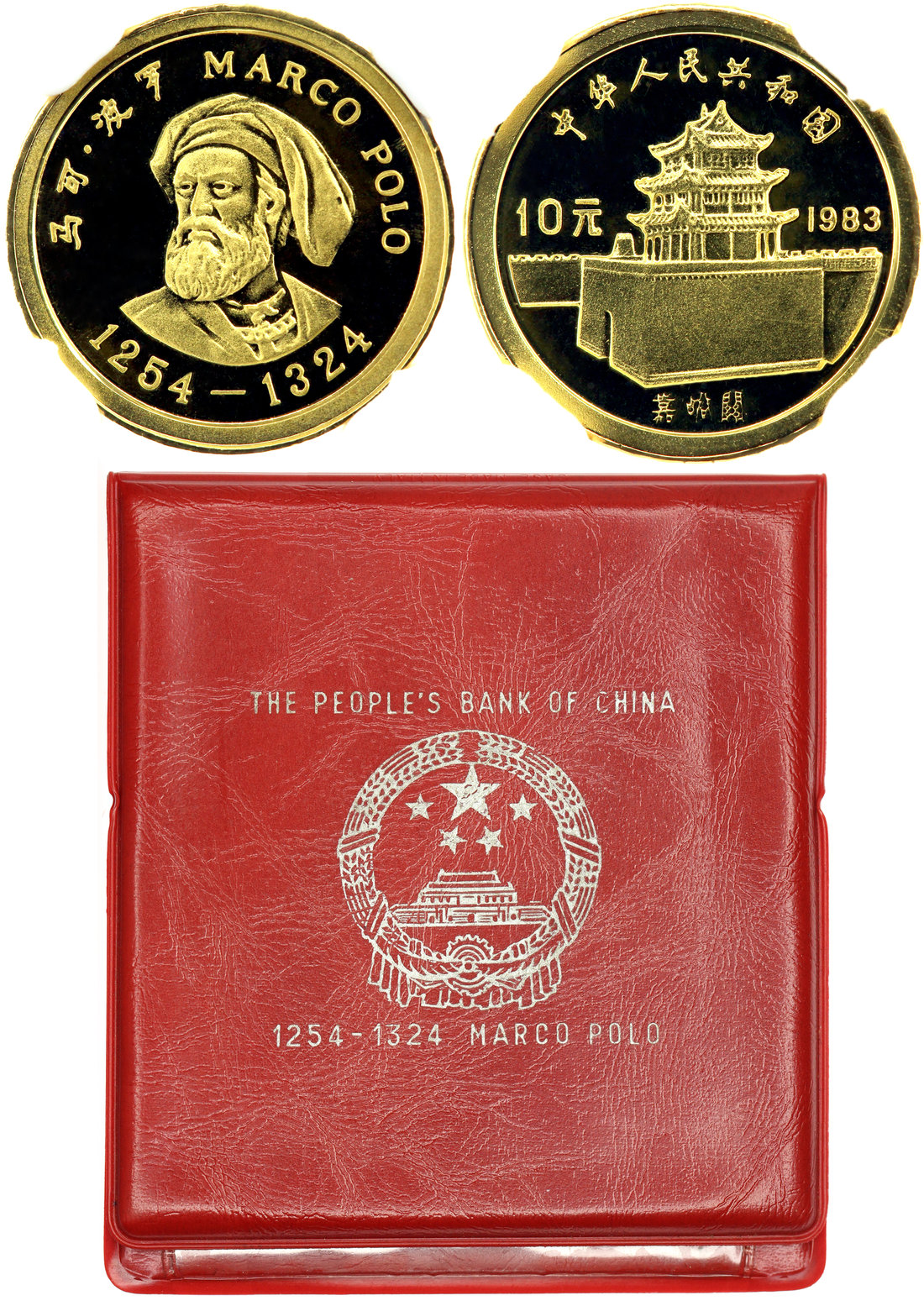 China, gold 10 yuan, 1983, Marco Polo, 1 gram gold, with original packing and certificate,