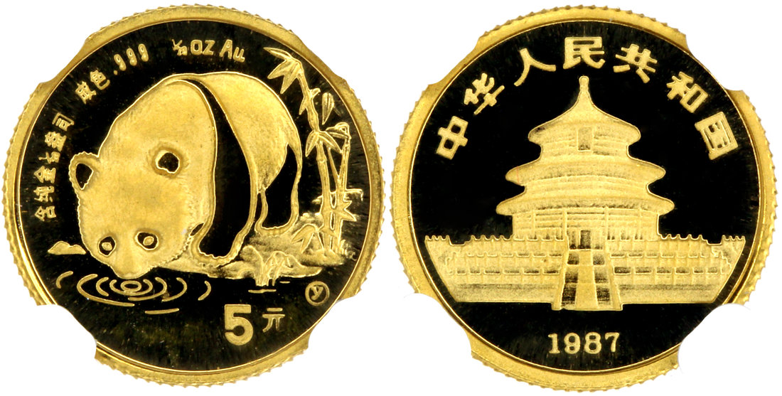 China, 5 Yuan, 1/20 oz gold coin, 1987 Panda Series, NGC MS68