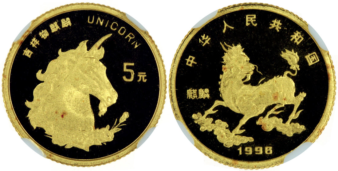 China, 5 Yuan, 1/20 oz gold coin, 1996, Unicorn, NGC MS69