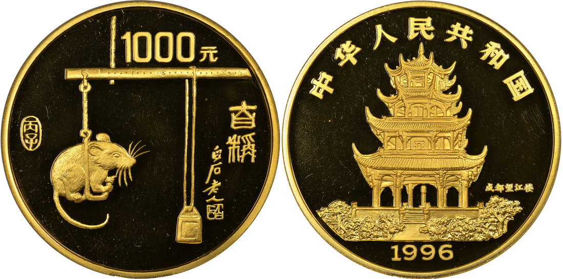 People's Republic of China, gold 1000 yuan, 1996, Year of Rat, number 75, 12 oz gold, mintage only 99,