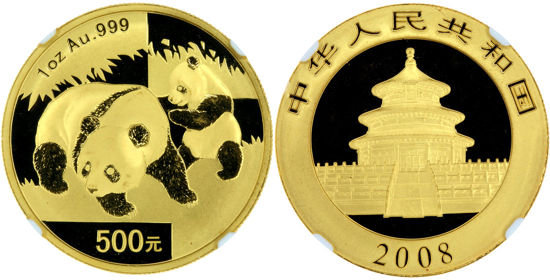 China, 500 Yuan, 1 oz gold coin, 2008, Panda Series, NGC MS67