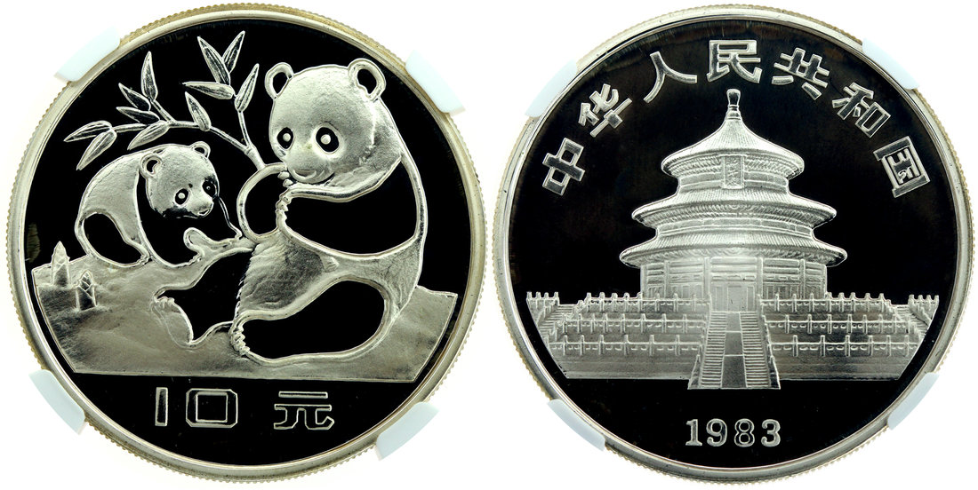 China, silver 10 yuan, Panda, 1983, 1st issue,