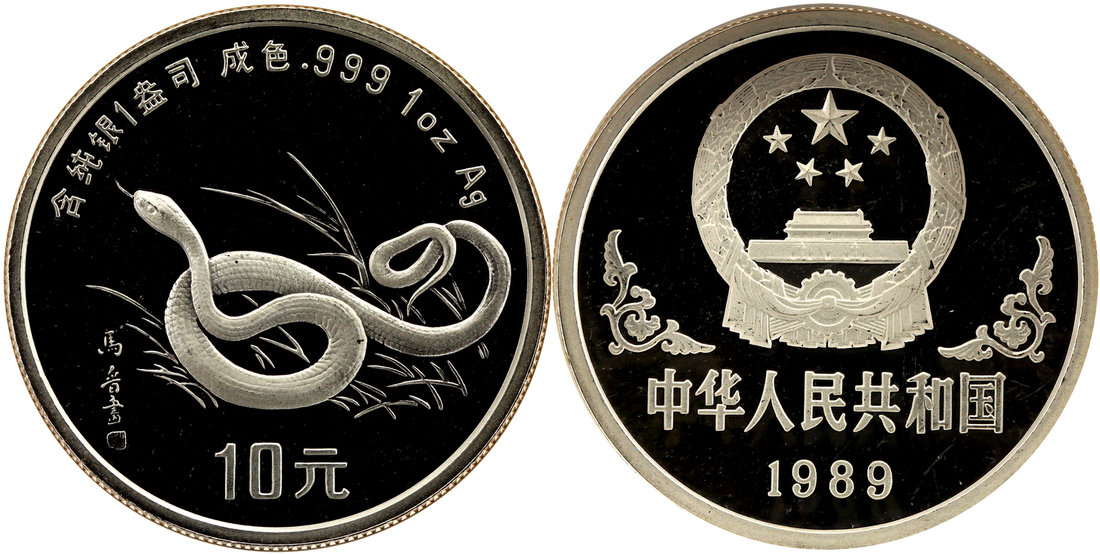 People's Republic of China, 10 yuan, silver Chinese horoscope coins (second series), 1989 Lunar Series, Year of the Snake, come with original certificate of authenticity,