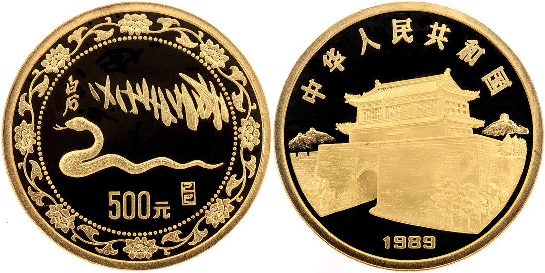 China, Gold 500 Yuan, 5oz gold , 1989, Lunar Series, Year of the Snake, mintage 500, NGC PF67 Ultra Cameo, rare.
