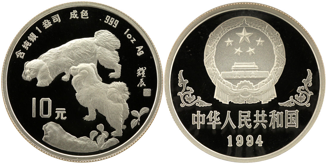 People's Republic of China, 10 yuan, silver Chinese horoscope coins (second series), 1994, Lunar Series, Year of the Dog, come with original certificate of authenticity,