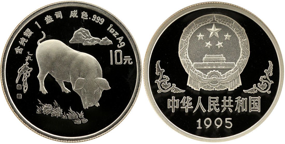 People's Republic of China, 10 yuan, silver Chinese horoscope coins (second series), 1995, Lunar Series, Year of the Pig, come with original certificate of authenticity,