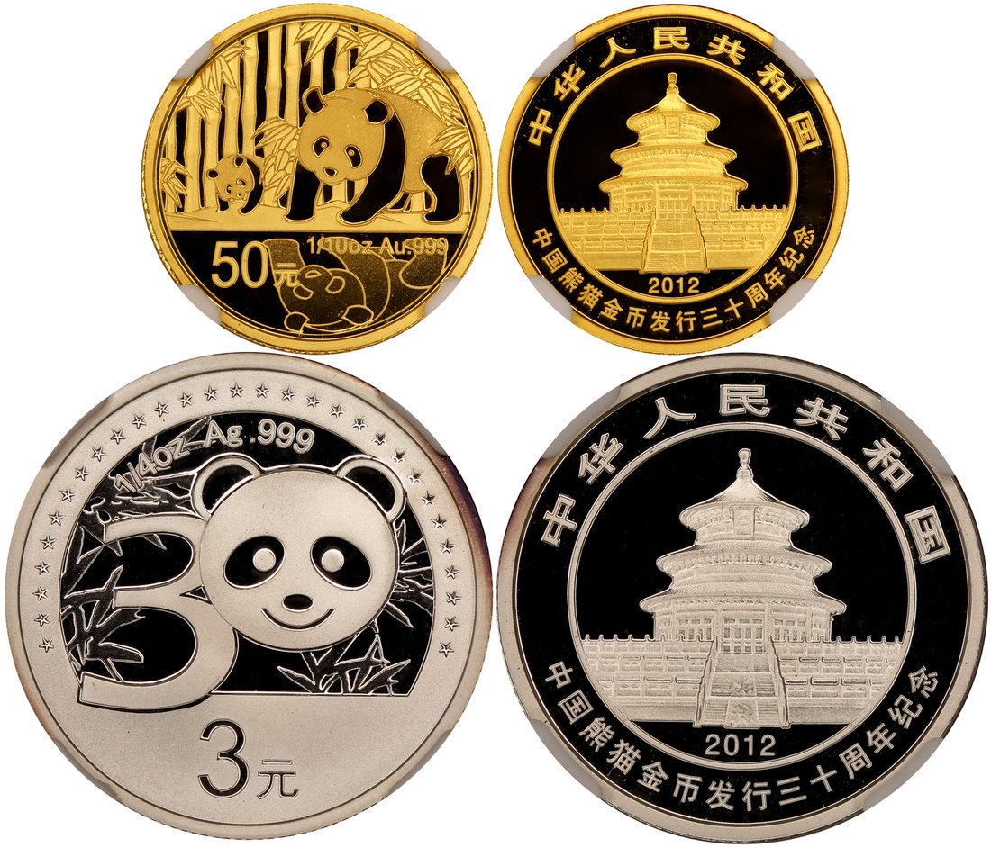 People's Republic of China, 3 yuna, silver and 50 yuan, gold, both dated 2012, panda on obverse,