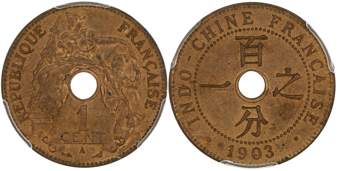 French Indo China, bronze 1 cent, 1903-A,