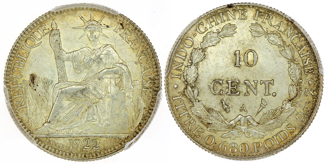 French Indo China, silver 10 cents, 1922-A,