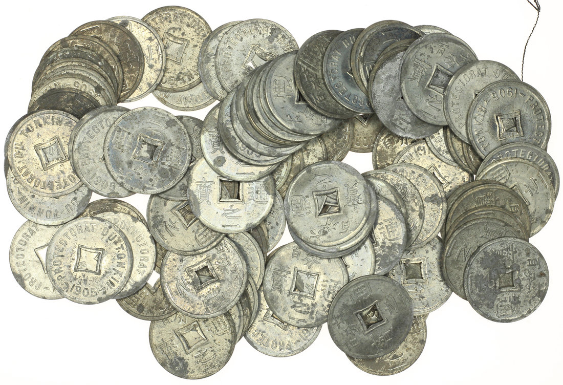 French Indo China, a group of 100 Tonkin, 1/600 Piastre (1905), obverse legend 'Protectorat du Tonkin',