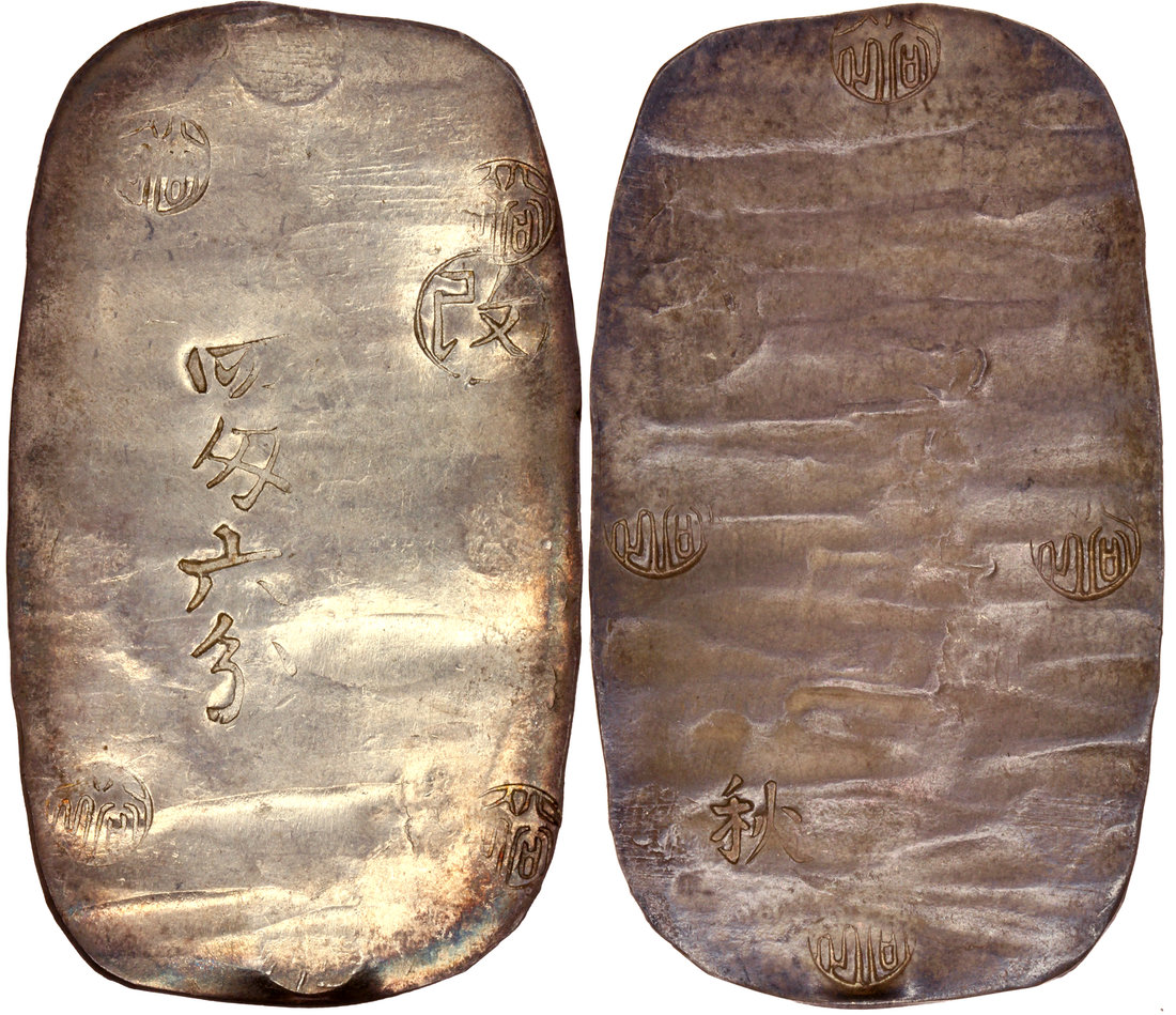 Japan, silver koban, Akita, ND(1863), 4 momme 6 fun, weight 17.2g, with JNDA certificate number '45403,