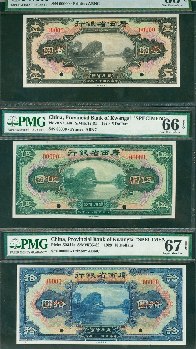 Provincial Bank of Kwangsi, set of 3 specimens for $1, $5 and $10, without place name, series of 1929,