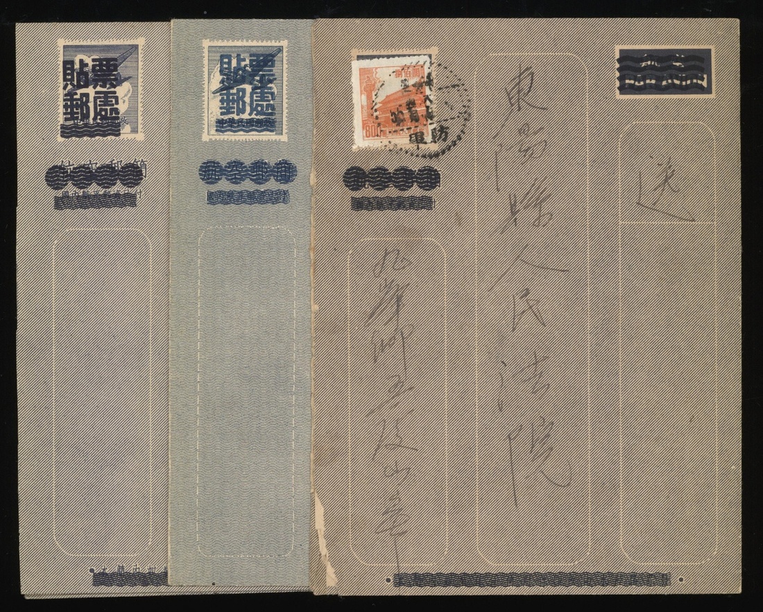 Overprinted "post stamp here" ROC stamped airmail Letter Sheets (3), two are unused, one used with $800. Tien An Men stamp.