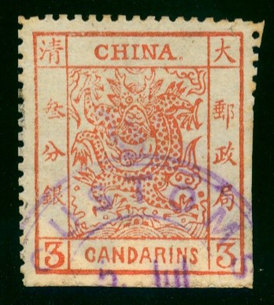 3 ca. brown red, used with blue Customs c.d.s. ., lower and right side trimmed perf. Chan 8