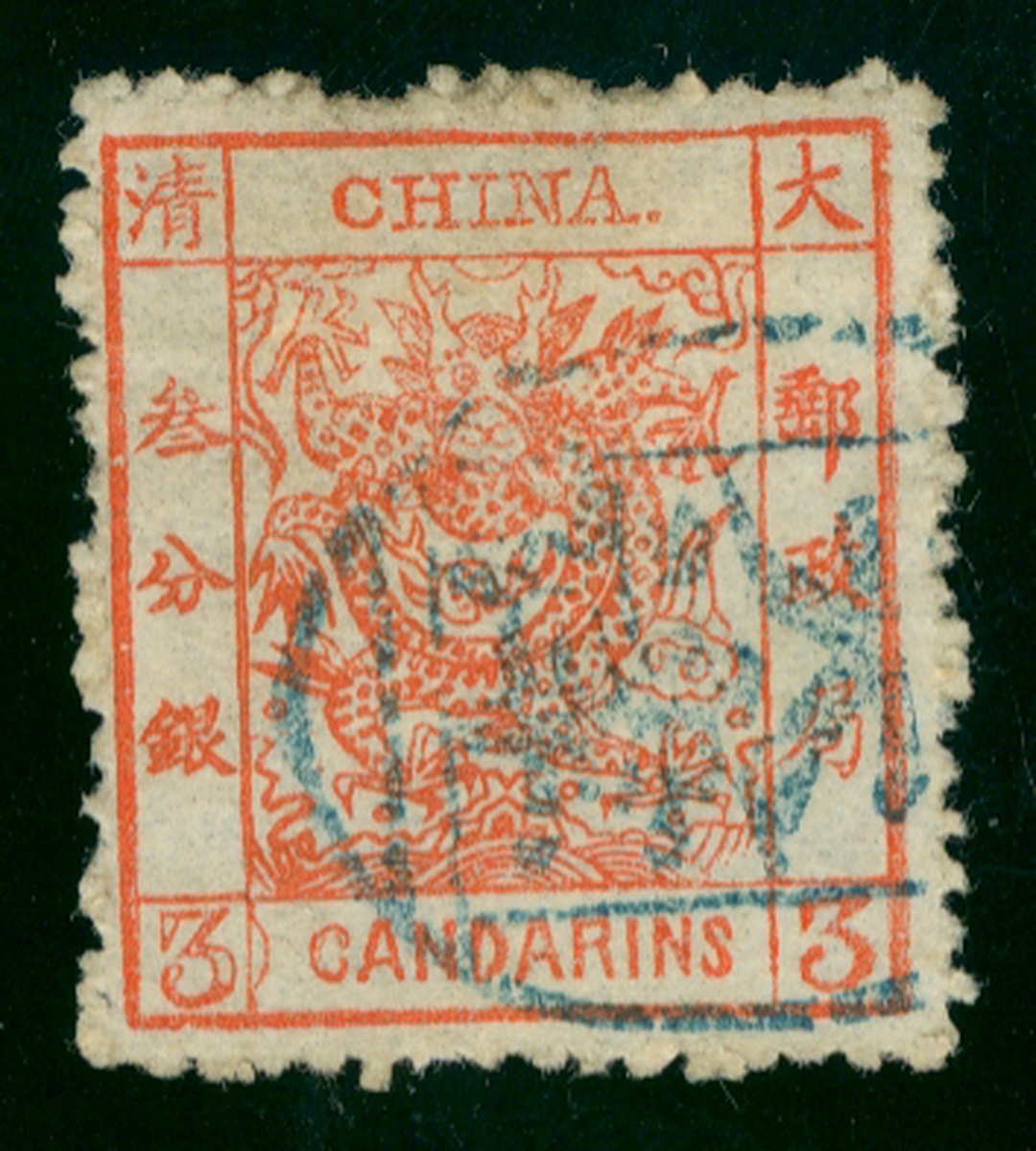 3 ca. vermillion, semi-circle at right of lower left”3 “, fine used. Chan 11f