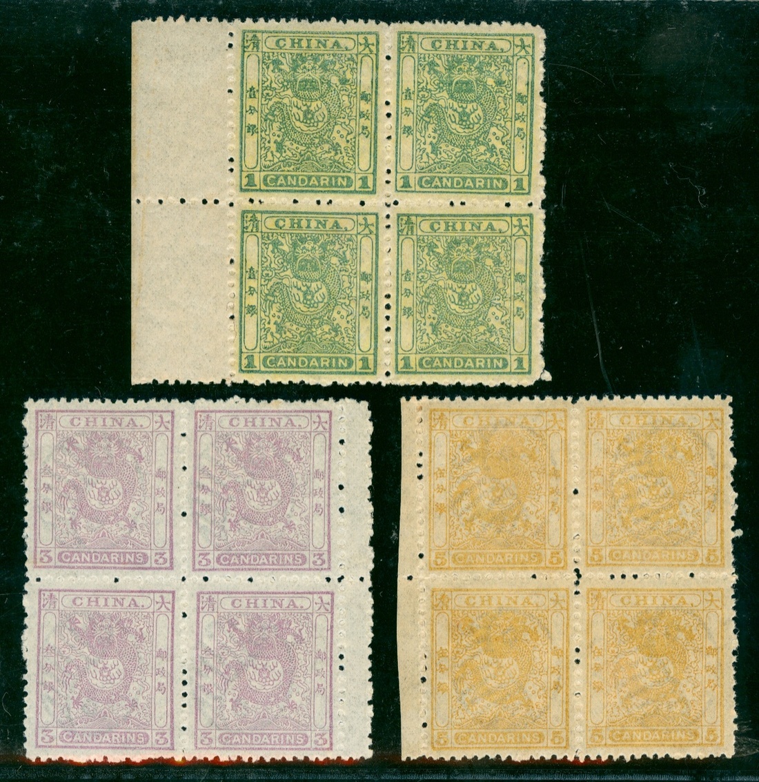 1ca. to 5ca. set of three, blocks of four, all with left and right margins. mint with large part of original gum, very fresh and seldom offer . Chan 16-18