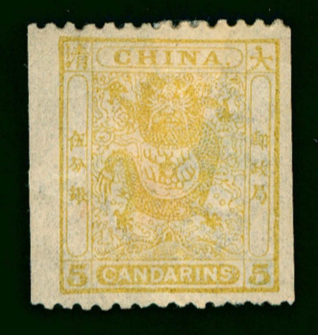 5ca. olive yellow, mint hinged with left and right imperf. variety, original gum, very scarce in this value. Chan 21g