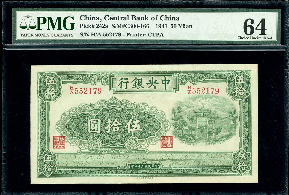 Central Bank of China, 50 Yuan, 1941, serial number H/A 552179, (Pick 242a), PMG64, Choice Uncirculated