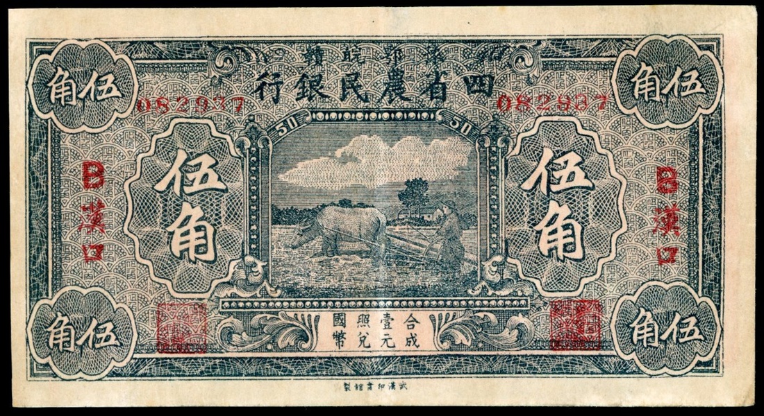Agricultural Bank of the Four Provinces, 50 Cents, Hankow, ND(1933), serial number B082937, (Pick A86a), very fine