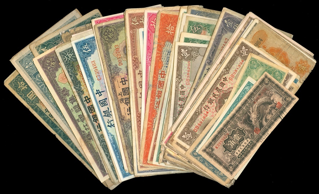 民國時期不同紙幣約90枚一組,包括中國銀行丶交通銀行丶農民銀行丶日佔偽政府及地方發行,品相不一,敬請預覧