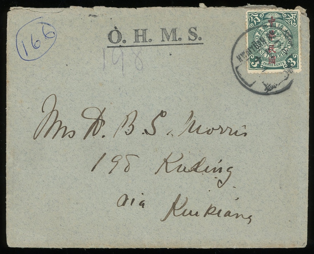 1912 (13 Jul.) a cover to Kuling bearing 3c. tied by Hwaiyuan c.d.s. via Nanking and scarce Kuling lunar ‘ Kwai mou ‘arrival c.d.s.