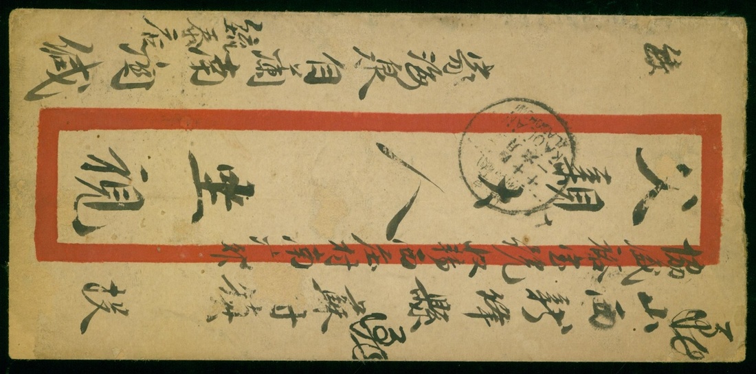 1932 (16 Apr.) Kaolan to Sutsunchen (Shansi ) red band envelope, bearing Junk 4c., tied by Kaolan c.d.s., with Sinkiang transit 27 Apr. c.d.s. and Sutsunchen arrival c.d.s.