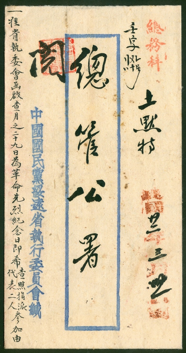 1933 Executive Committee of Suiyuan Province of China Nationalist Party Official stampless envelope.