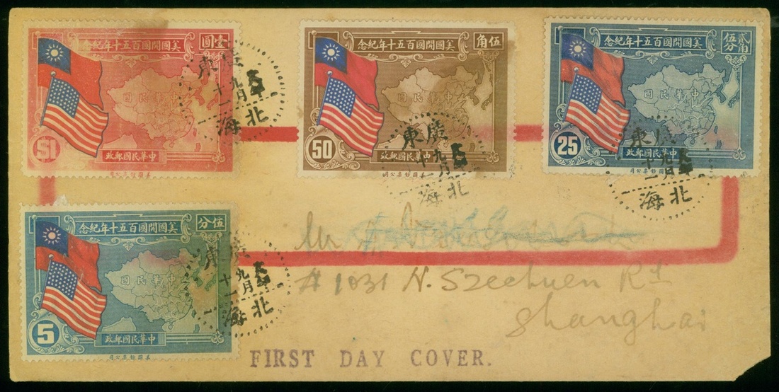 1939 (11 Sep.) Pakhoi to Shanghai envelope , bearing set of 150th Anniversary of The Constitution of The U.S.A. Commemorative Issue, tied by Pakhoi c.d.s., on reverse with Shanghai 20 Sep. arrival c.d.s.
