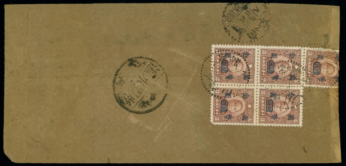 1947 (29 May.) Chunghsien to Nanking cover, bearing Dr.Sun surcharged $20.(5), tied by Chunghsin c.d.s., with Nanking 4 Jun. arrival c.d.s., and has a "Received water wet" round chapter.