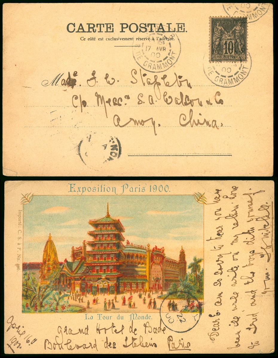 1900 (17 Apr.) a incoming picture postcard from Paris to Amoy.