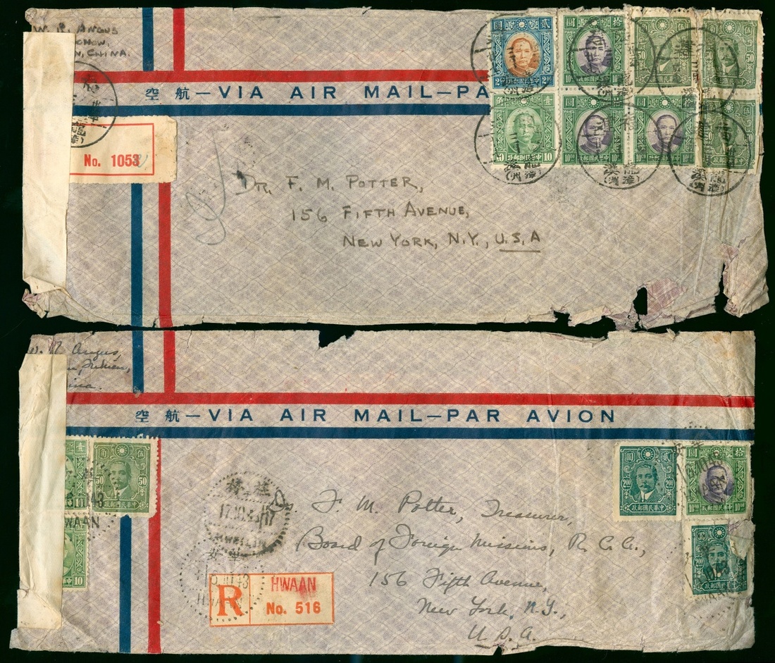 1943 two registered airmail post covers to USA from Fukien, all censored "OPENED BY EXAMINER"