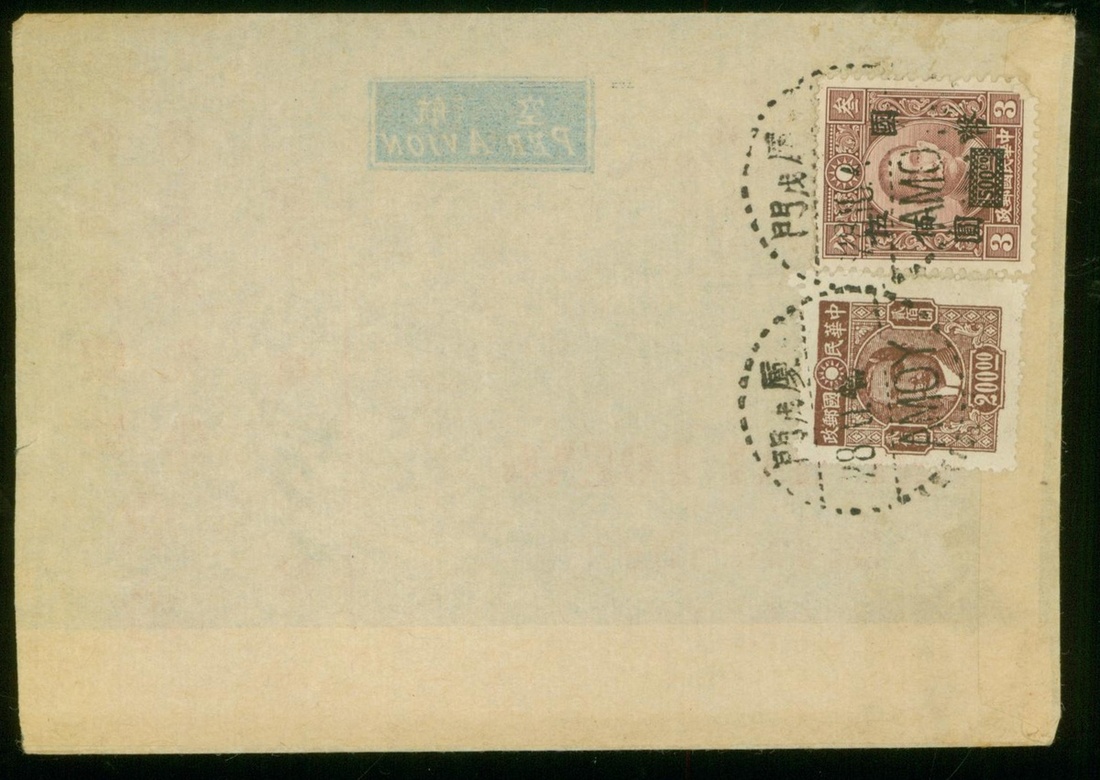 1946 (28 Oct.) airmail to Sumatra, bearing Dr. S.Y.S. C.K. Central Print $200 and Dr. S.Y.S. $500 on 3c, tied by Amoy c.d.s. Good cover.