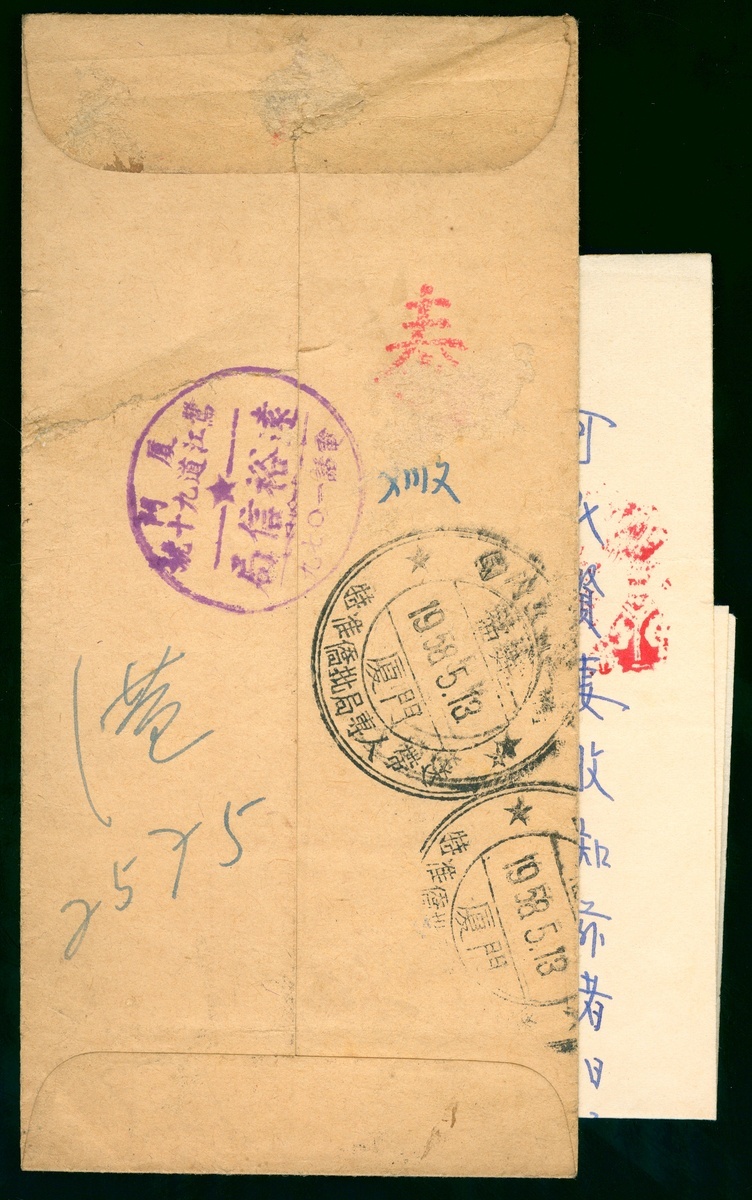 1958 (13 May) cover with content to Yungchun with Amoy c.d.s.