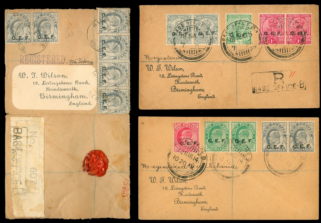 1911-14 three “ C.E.F.” items including a registered to England