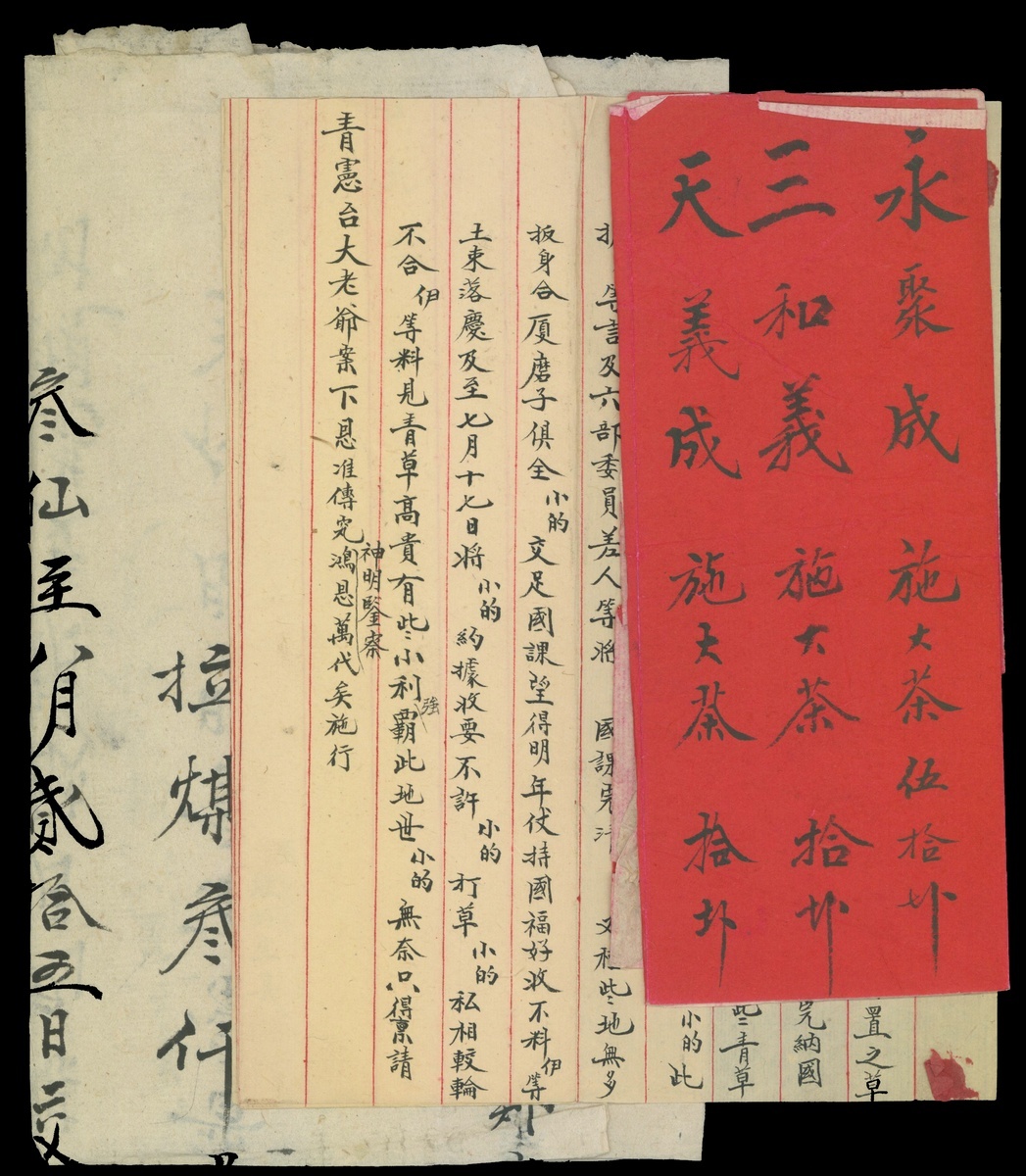 1927 Receipt of goods and shipping fee by handwriting with red seal. and one sheet of Notice paper by handwriting, also one sheet of Gift bill.