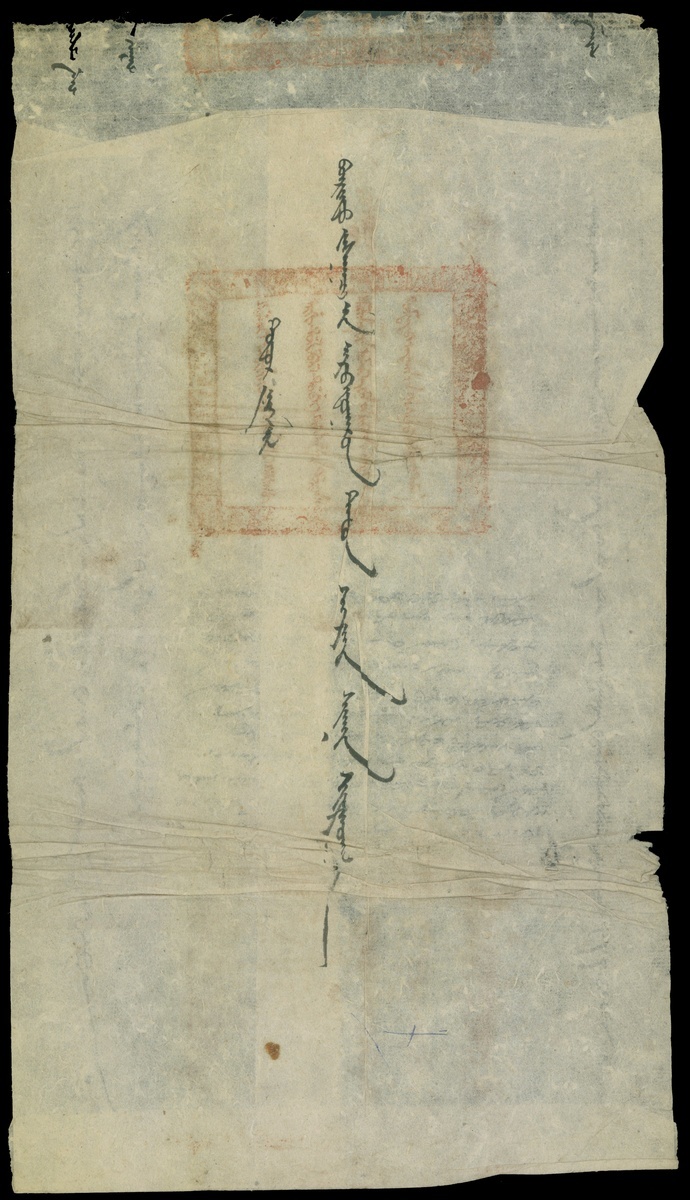 Qing dynasty. May 06, 1872 Script from assistant clerk Baldandorj, a graf who assists the authority. Sent to you Beis of the authority khoshuu who is eligible to see Hanchin Man as being in charge of stamp of assistant general of soldiers of east hand of Khalkha and whose 2 ranks were noted.