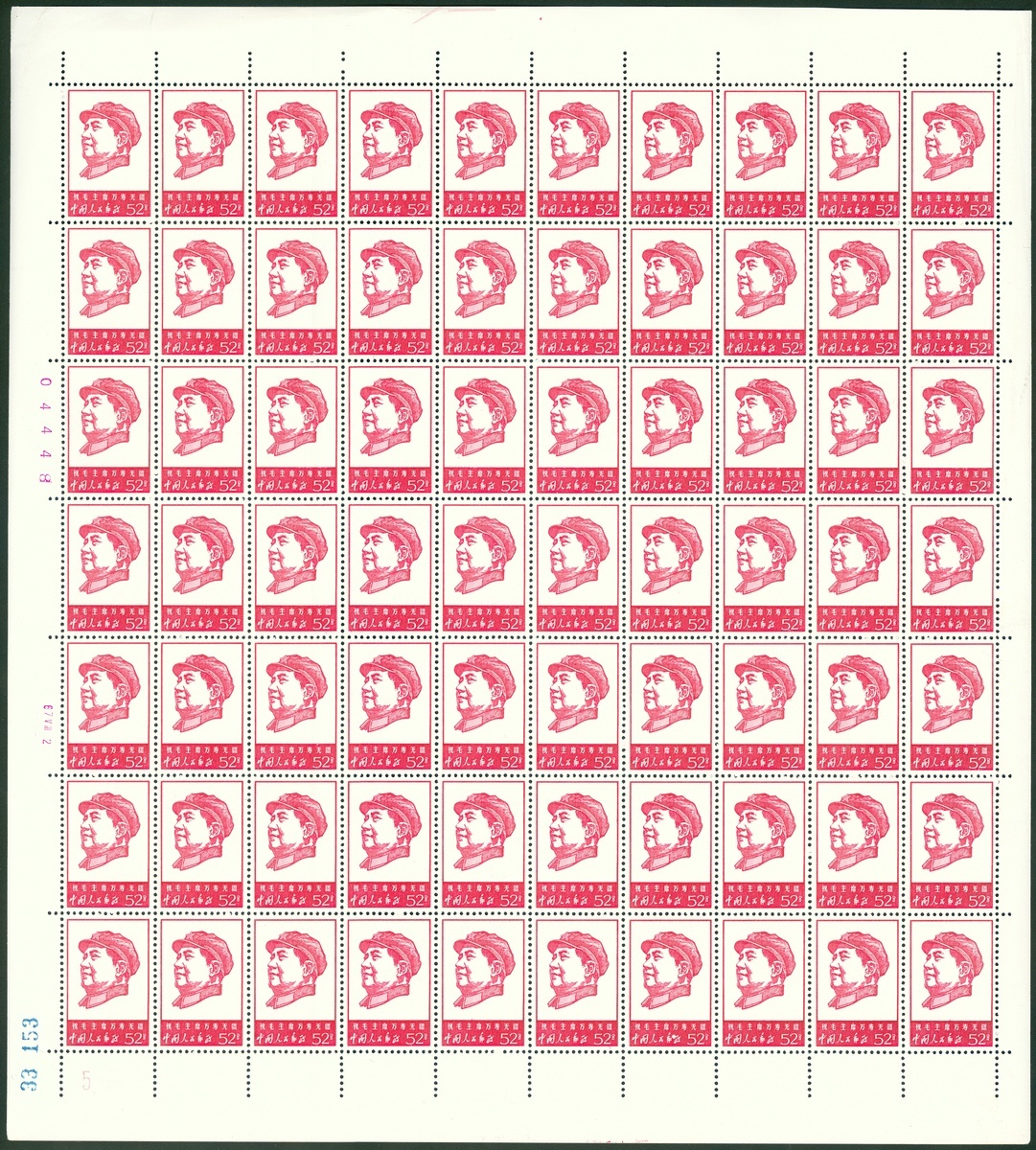 1967 (W4) "Long Live Mao" 52fin full sheet of 70 stamps, unmounted mint. Yang W27