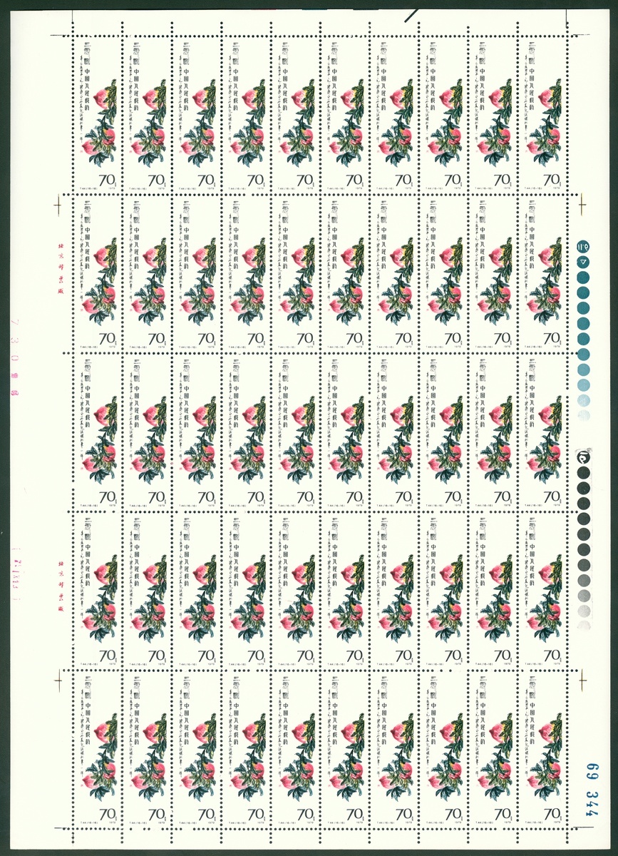 1980 (T44) Selected Paintings of Qi Baishi stamp set, full sheet of 50 stamps, unmounted mint. Yang T210-225