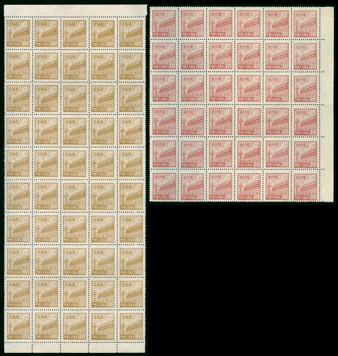 1950 (R2) Tien An Men 2nd print, complete set of three x 183, some in large multiples, unused, very fine.