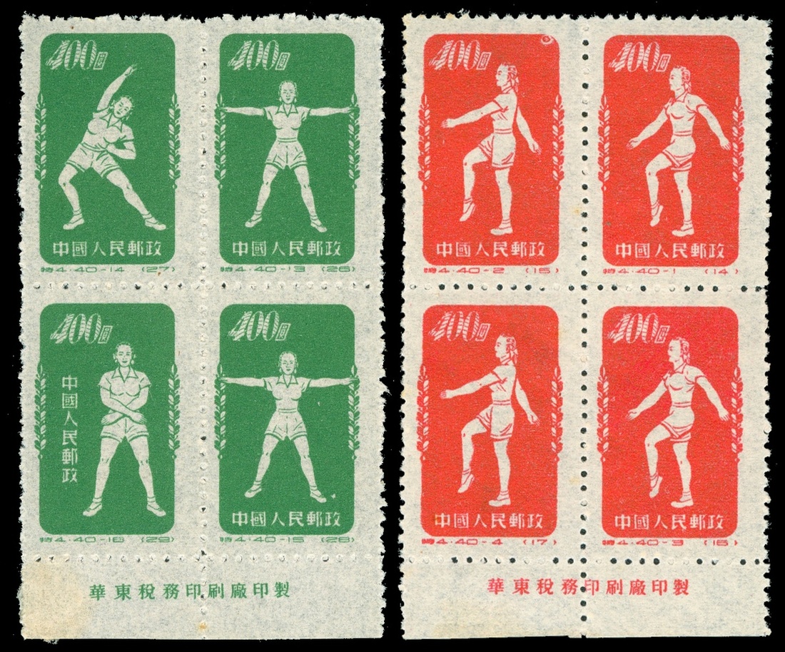 1952 (S4) Gymnastics By Radio stamp set, original printing, block 2, 40-5/8 with few vertical perforation separated, mint