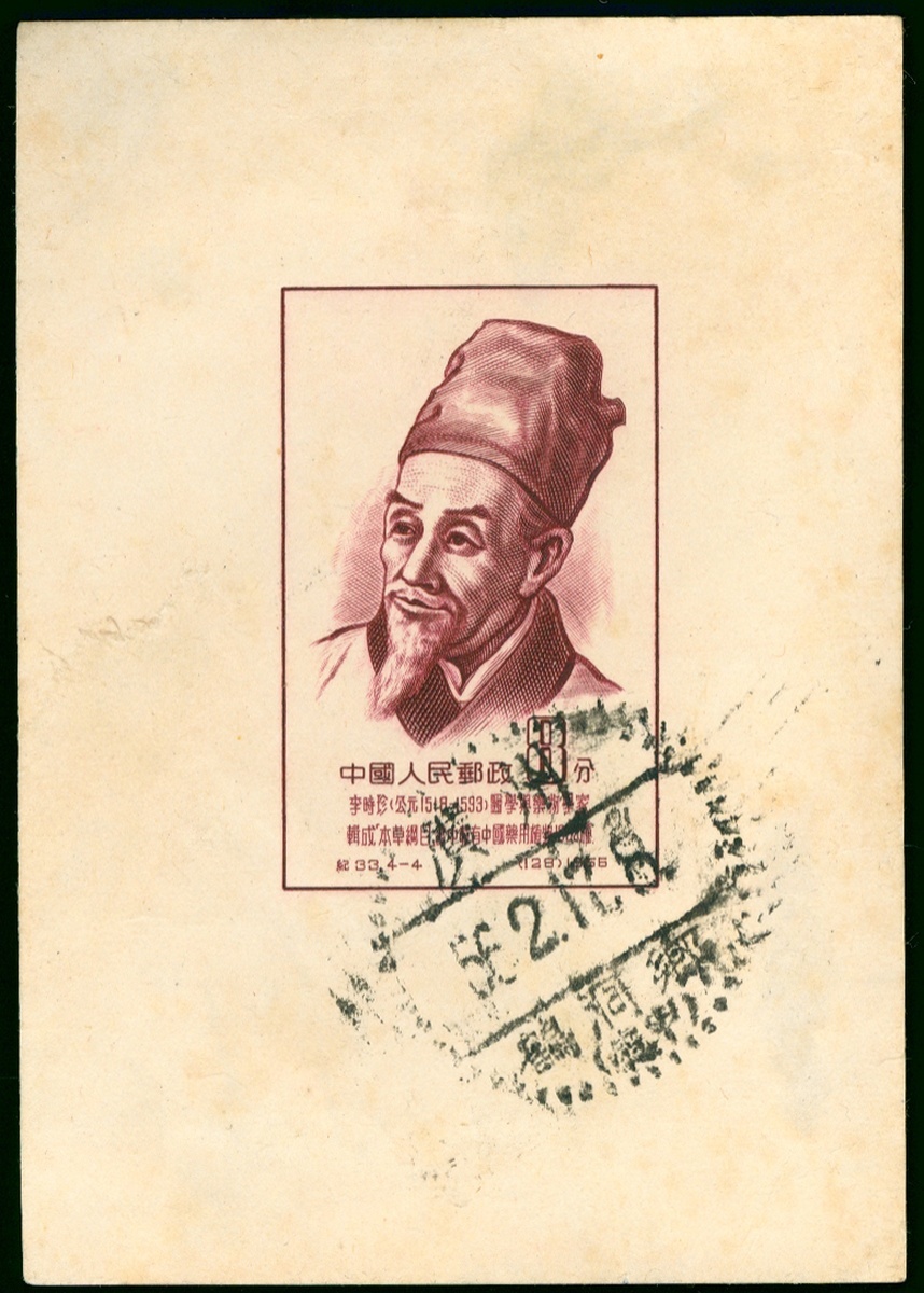 1955 (C33M) Scientists of Ancient China Miniature sheet, set of 4, used, damage