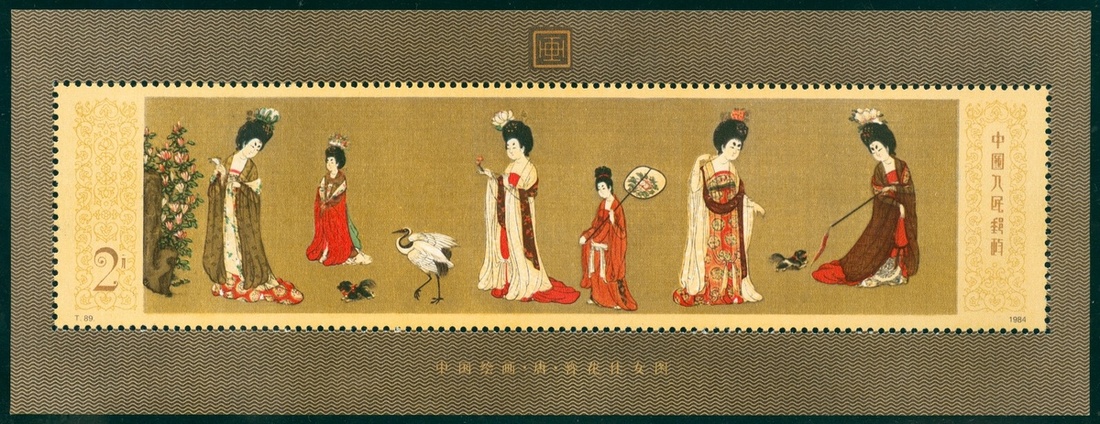 1984 (T89) (T89M) Chinese Painting of Tang Dynasty of the Beauties Wearing Flowers stamp set and minature sheet, unmounted mint.